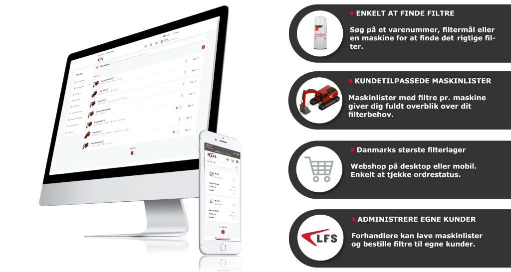 I vores brugervenlige kundeportal LFS (Lekang FilterSystem) kan oprettede brugere 24/7 finde og bestille filtre og filterpakker til hele maskinparken i webshoppen. Opret dig som kunde her og få adgang til Danmarks største filterlager.